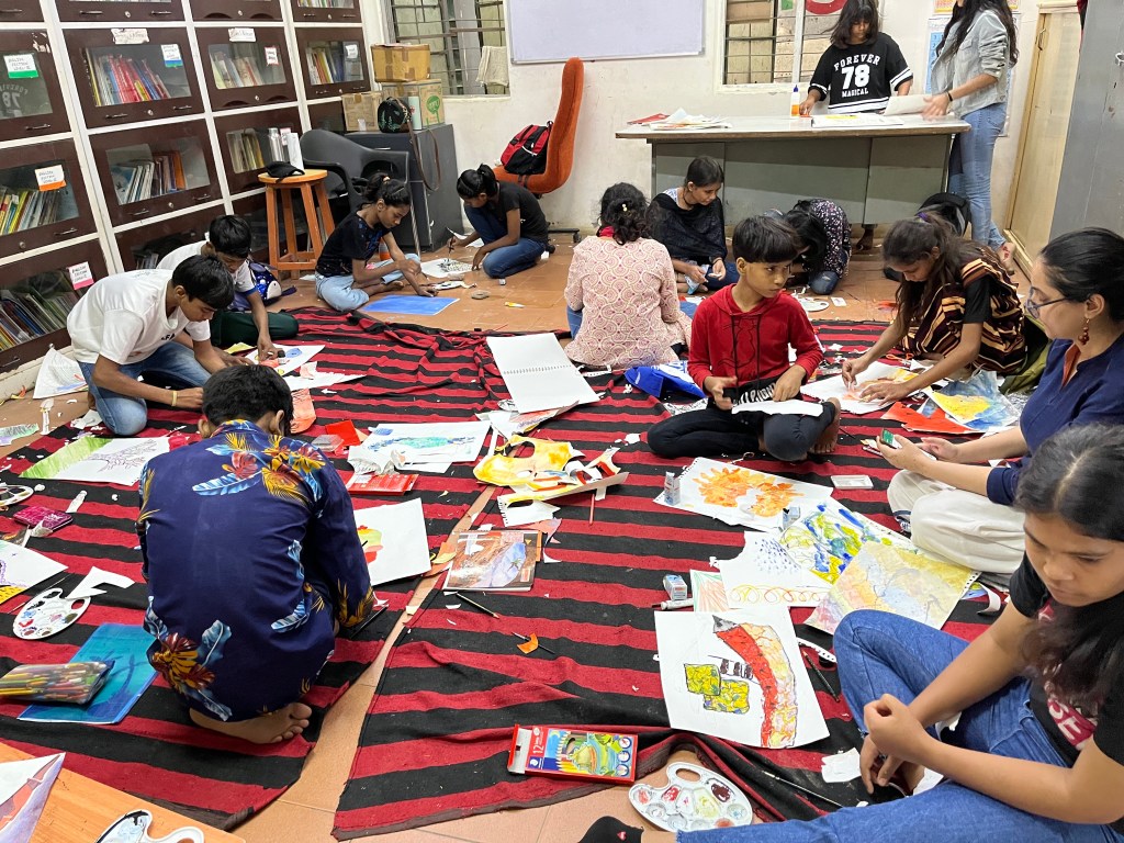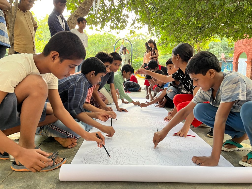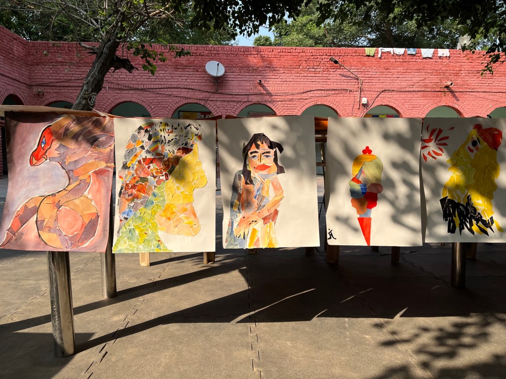 perhaps makes us more excited to do what we are about to do – to actually first get a sense of the possibilities before hand itself and perhaps and see some examples of how other artists have worked with that method or material. I also kept in mind things that we had learnt in previous sessions and tried to connect them in future sessions so that there was a loose continuity. I think the students really enjoyed this. Many of them specifically mentioned that they liked the way in which I explained things and the many examples I shared to explain what I was talking about. The works of other artists and so on.