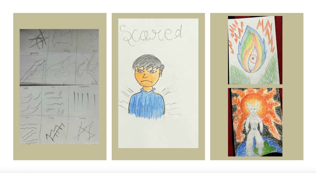Emotions are at the heart of everything we do. We begin with an abstract mark making activity in which we explore the kind of Lins and marks we would make to represent a selection of emotions. We compare our results to see if there is a common vocabulary in the type of marks we have made. Following this, we drew portraits of emotions and also dual portraits in which we represented the same scene, character, or form, but in two different emotional states.