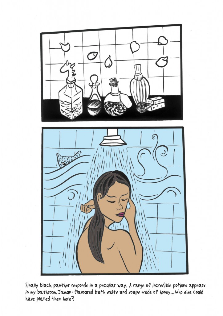 Posted on July 9, 2019March 13, 2021 by shoili kanungo Black Panther and Little Fish A surreal graphic horror story, first published in the print issue of The Indian Quarterly, April 2015.