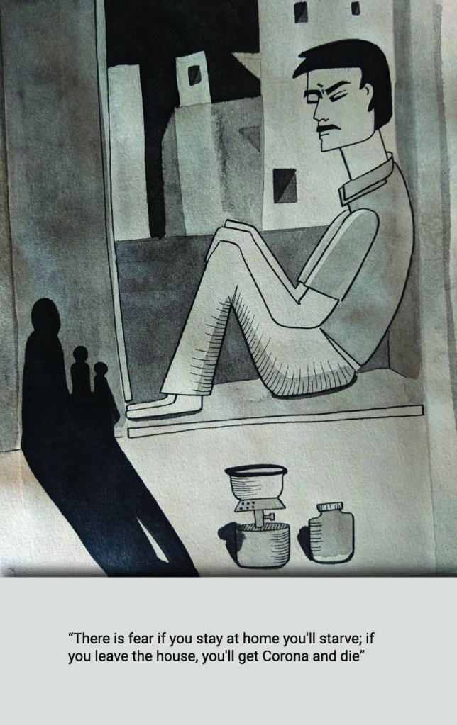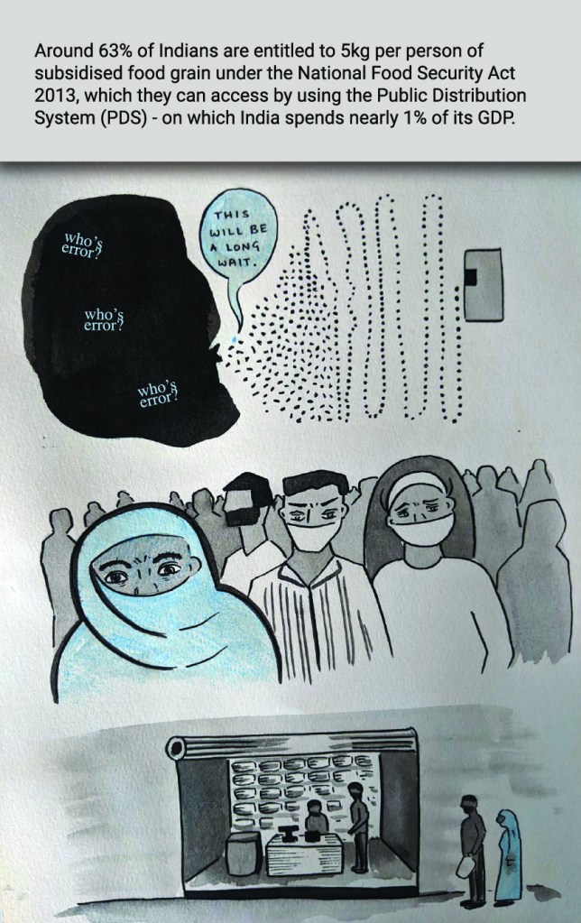 The ink and watercolor illustrations are a part of an illustrated essay made in collaboration with Road Scholarz, who are a collective of freelance scholars and student volunteers interested in action-oriented research, socio-economic rights and related issues.