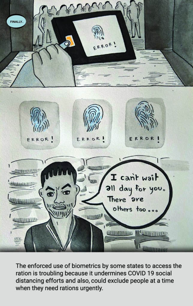 How does biometric authentication impact the Public Distribution System in India especially during a crisis like Covid-19?