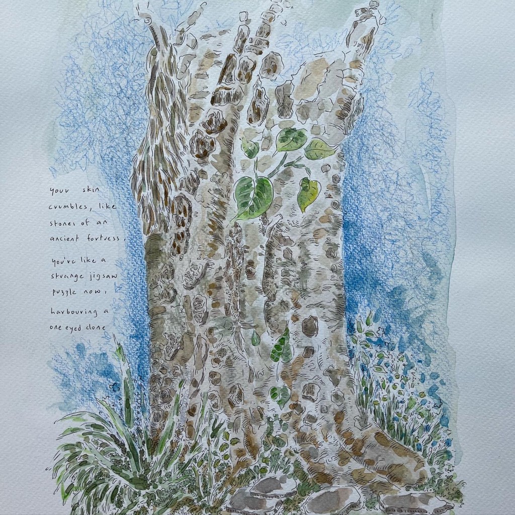 The Peepul Tree in four stages of growth. Size A4, Pen and Watercolor on paper.