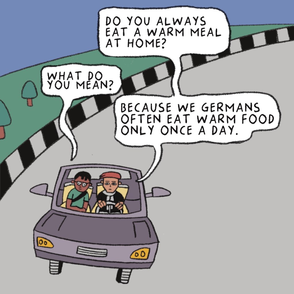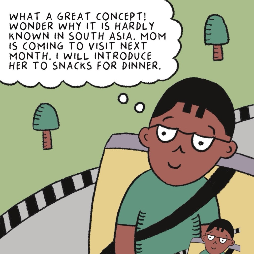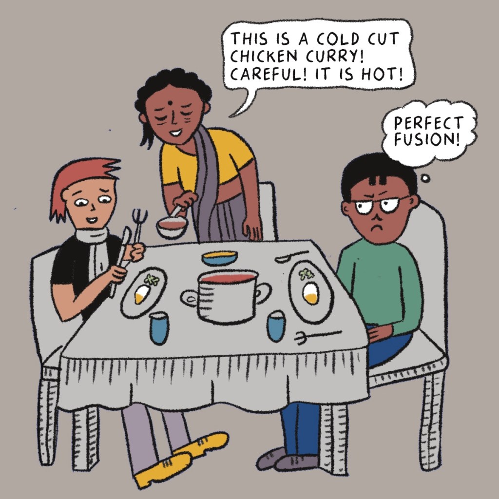 This comic was commissioned by the Goethe Institute as part of the ‘DreamLand Deutschland?’ project. Ten Illustrators from Germany and South Asia were asked to make comics about the experiences of south asian students studying in Germany. My comic is based on the story of Tapanta Bhanja and an anecdote he shared about ‘Cold Snacks’ in Germany. The comic has 16 frames and was made to be published on Instagram, and in addition, is part of a print anthology of comics.