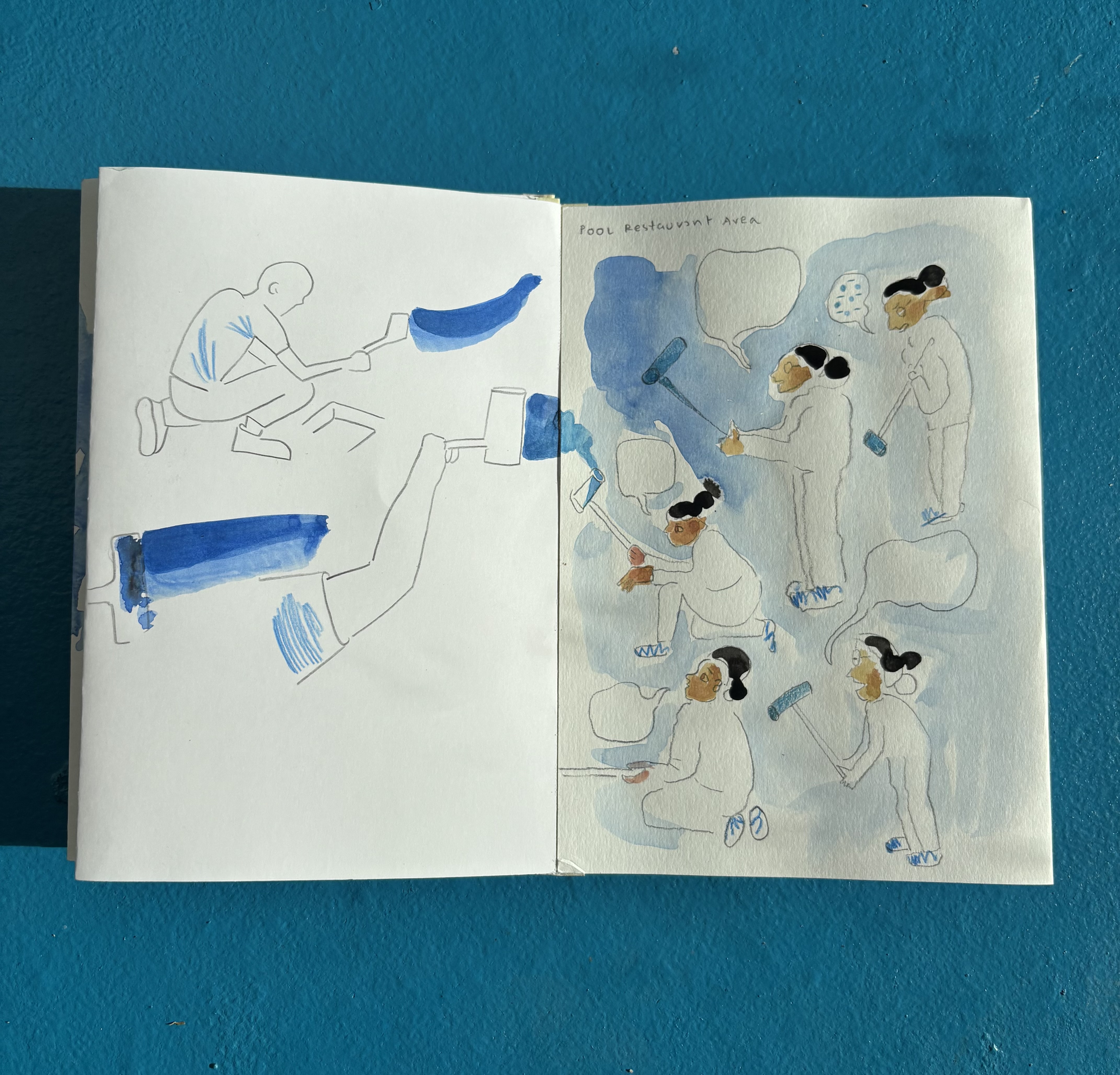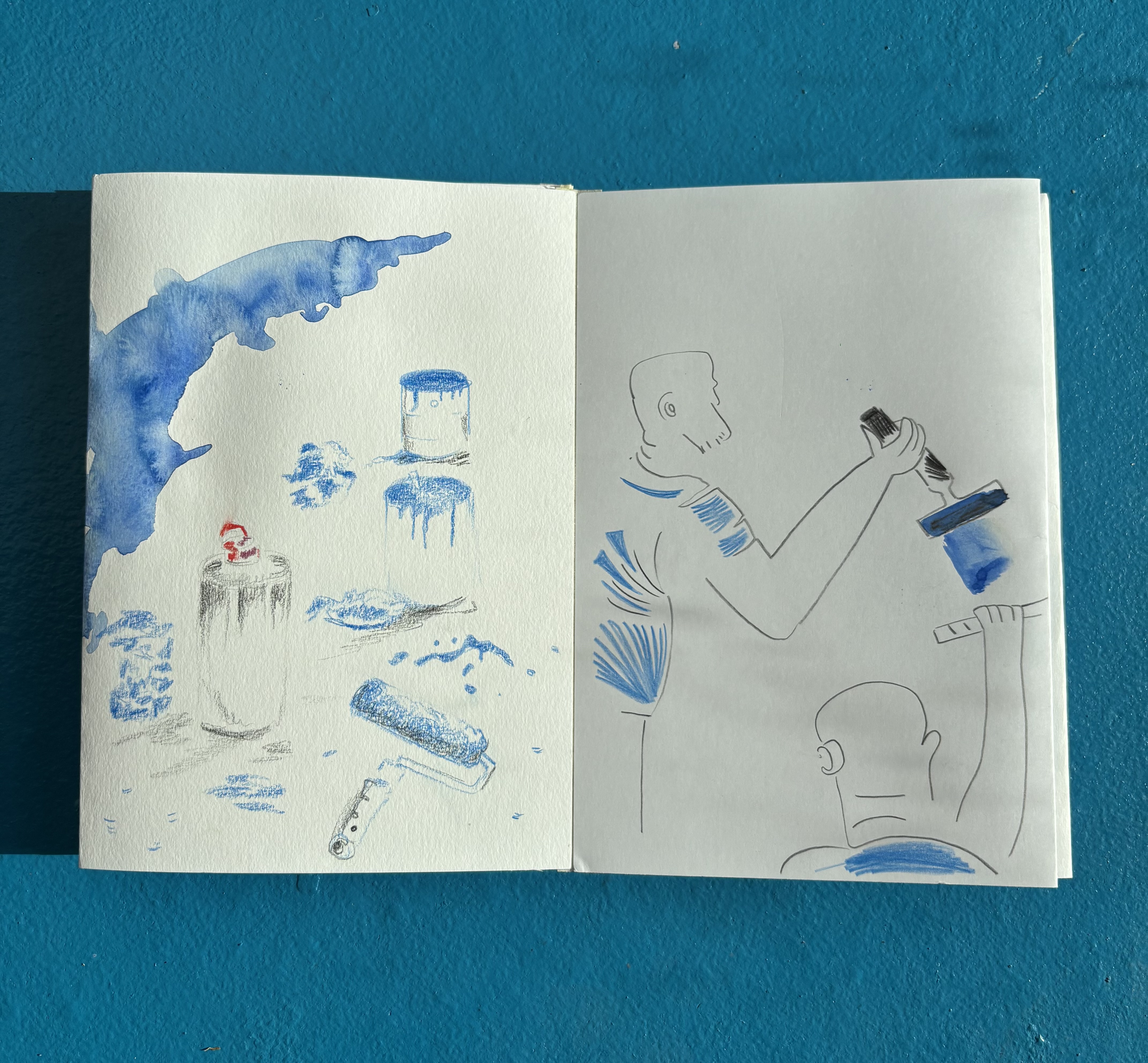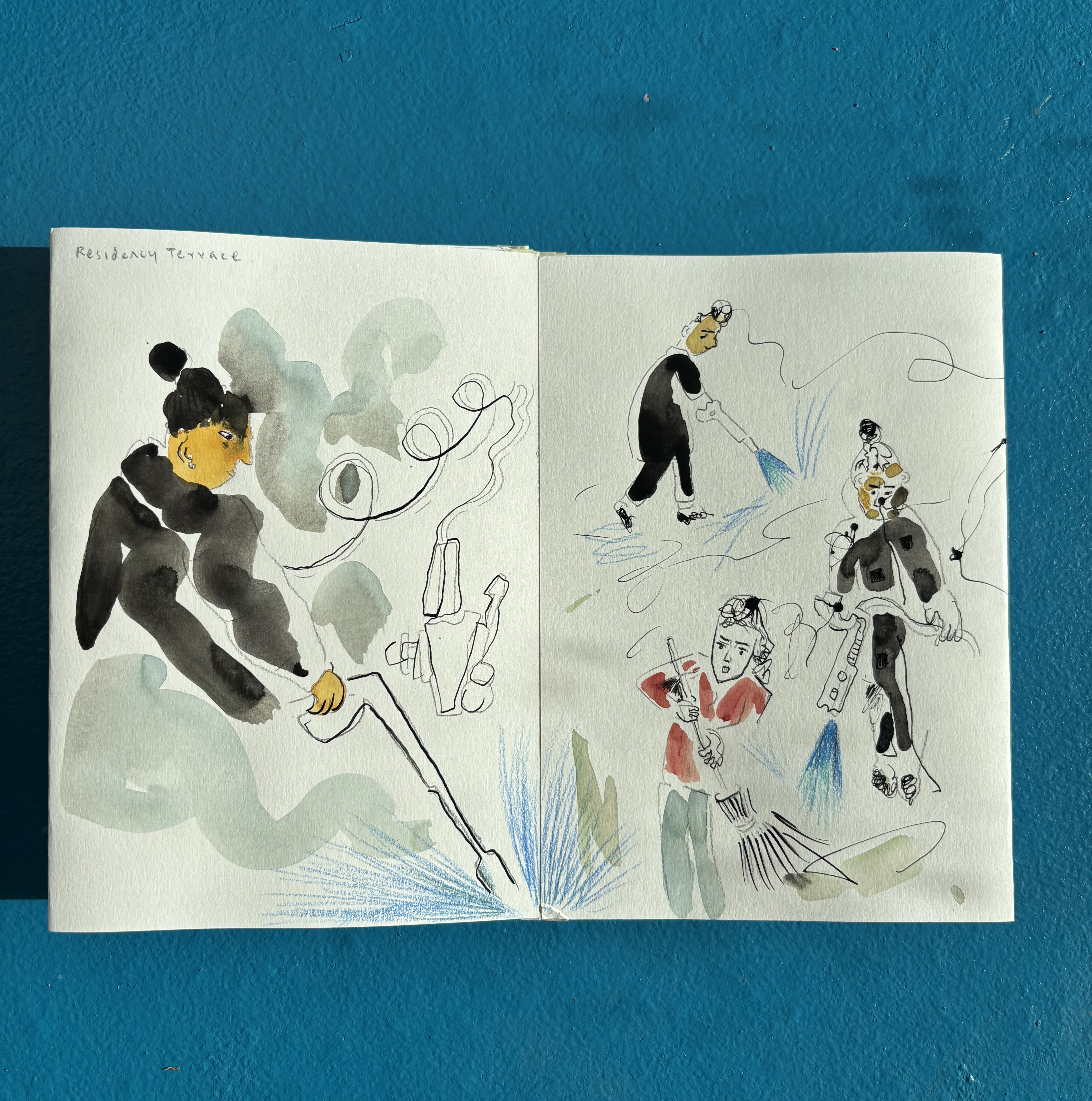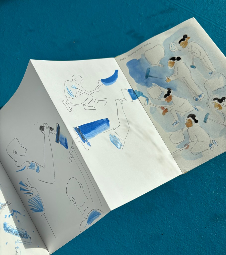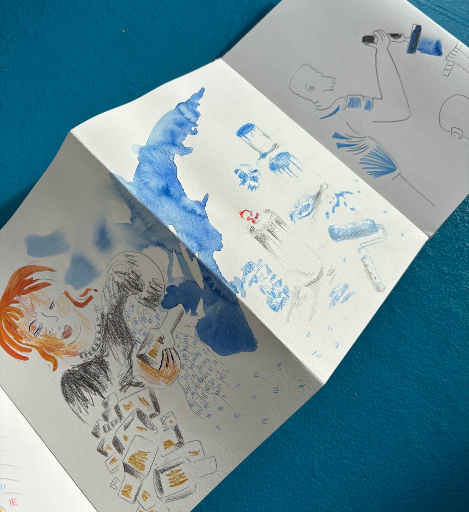 I made a concertina book of live drawings done in Neubad during their Annual Cleaning day. (Pro Helvetia – Fumetto Tandem Residency 2025)