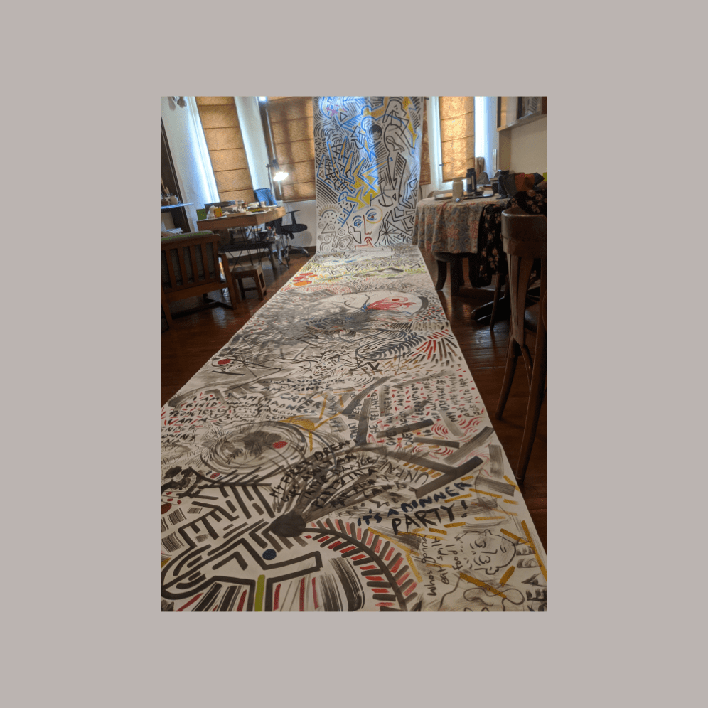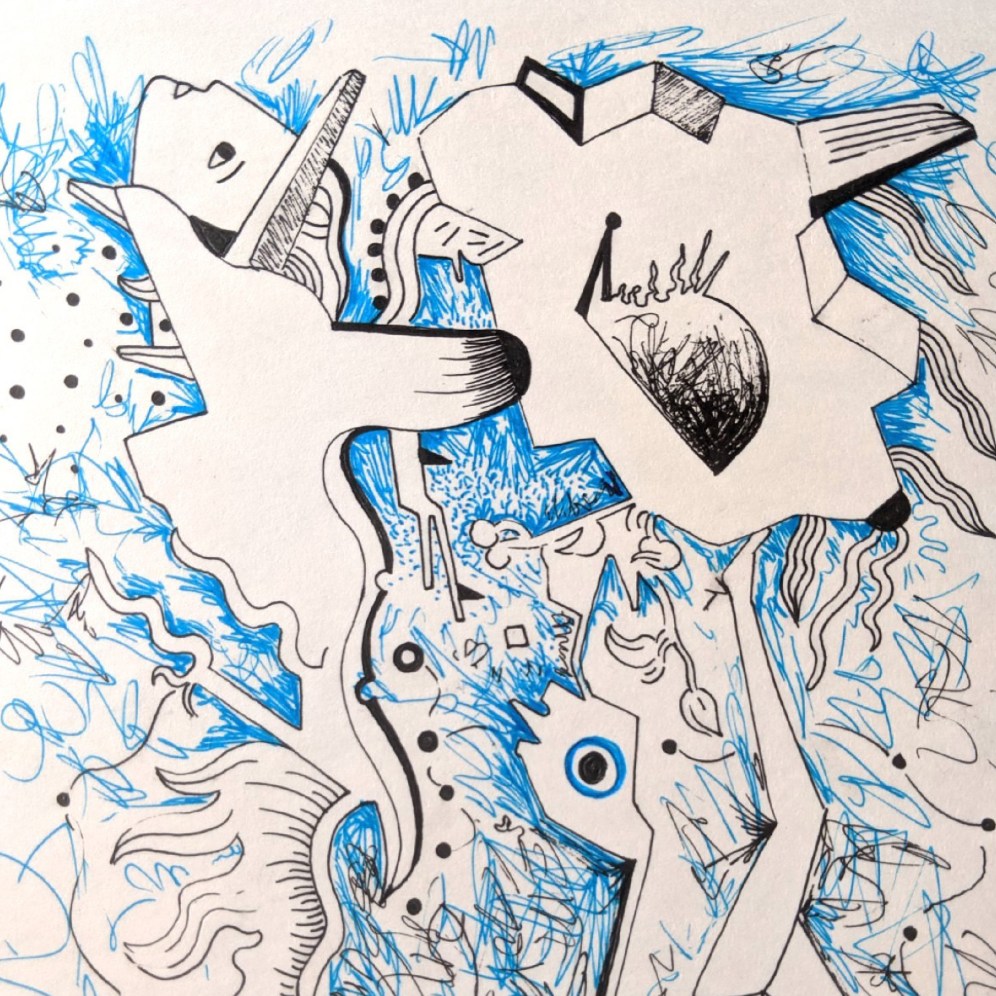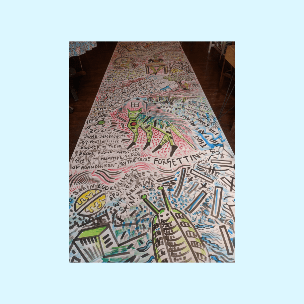 A large format drawing in ink and watercolor made suring lockdown 2020