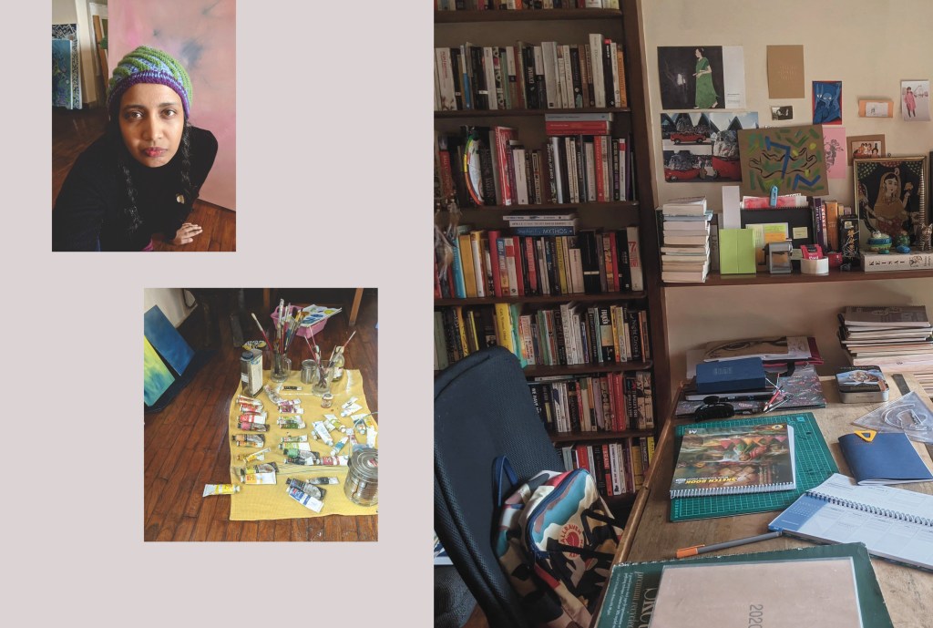 Shoili is inspired by everything. Snippets caught from Instagram stories, city walks, quantum physics, cosmology, mythology, Jung’s ideas about archetypes, our emotional lives, and the enchanting dullness of everyday. The personal, the political, the subconscious world of forms, they mingle.